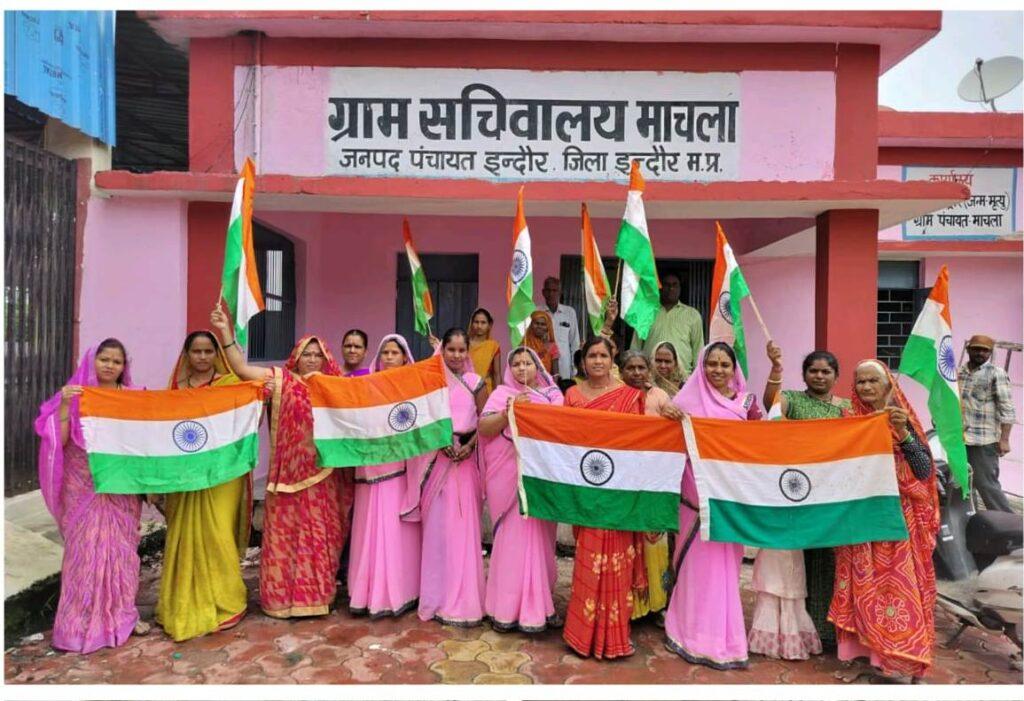 मुख्यमंत्री डॉ. मोहन यादव ने पूरे उत्साह और सबकी भागीदारी के साथ प्रदेश में हर घर तिरंगा अभियान मनाने का आव्हान किया है। मुख्यमंत्री जी के आव्हान पर इंदौर जिले में भी हर घर तिरंगा अभियान के तहत विभिन्न कार्यक्रम आयोजित किये जा रहे हैं। जिले के ग्रामों में तिरंगा यात्रा निकालकर हर घर तिरंगा अभियान का संदेश दिया जा रहा है। जिले की ग्राम पंचायत माचला में महिला समूह सदस्यों द्वारा तिरंगा यात्रा निकालकर एवं हाथों में मेहंदी लगाकर हर घर तिरंगा अभियान का संदेश दिया गया।